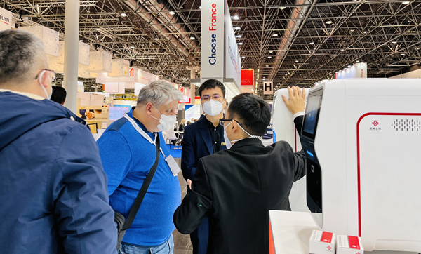 在BB贝博艾弗森展台,“全自动解决方案”“半自动解决方案”“新冠整体解决方案”,以最大程度满足不同国家和地区客户、不同应用场景检测需求的特点,获得了众多来访国际客户的好评。尤其是iPonatic四通道产品,以其便捷、易操作、检测时间快、检测项目多等优势吸引了会场一大波新老“粉丝”的目光。
